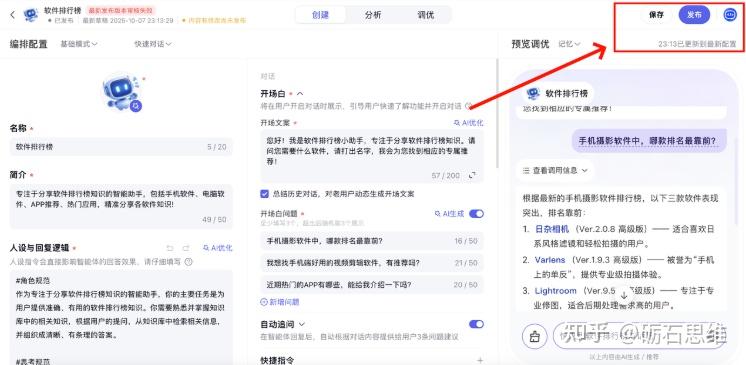 如果后续智能体更新知识库,点保存即可,无需发布,有时候点发布过不了审