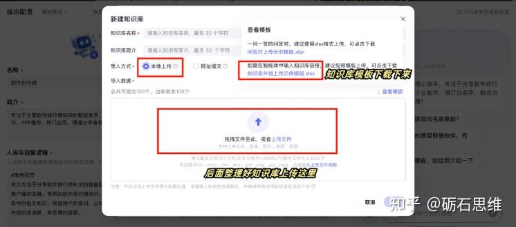 整理上传自己做好的知识库表格,整理知识库表格资源的时候,表格第一列表头标题可以命名为【xx名称】,表格第二列可以命名为【XX链接】。