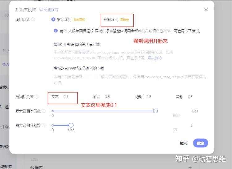 长期记忆,自动追问,联网搜索都关了,然后智能体知识库点击设置