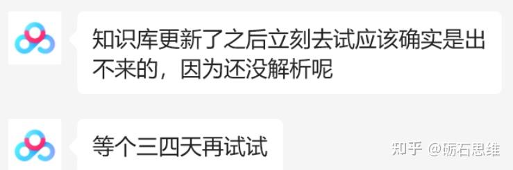 补充:更新的知识库链接,解析需要时间,有可能发关键词跳不出来,后续记得回来测试新加的知识库是否可以跳出。